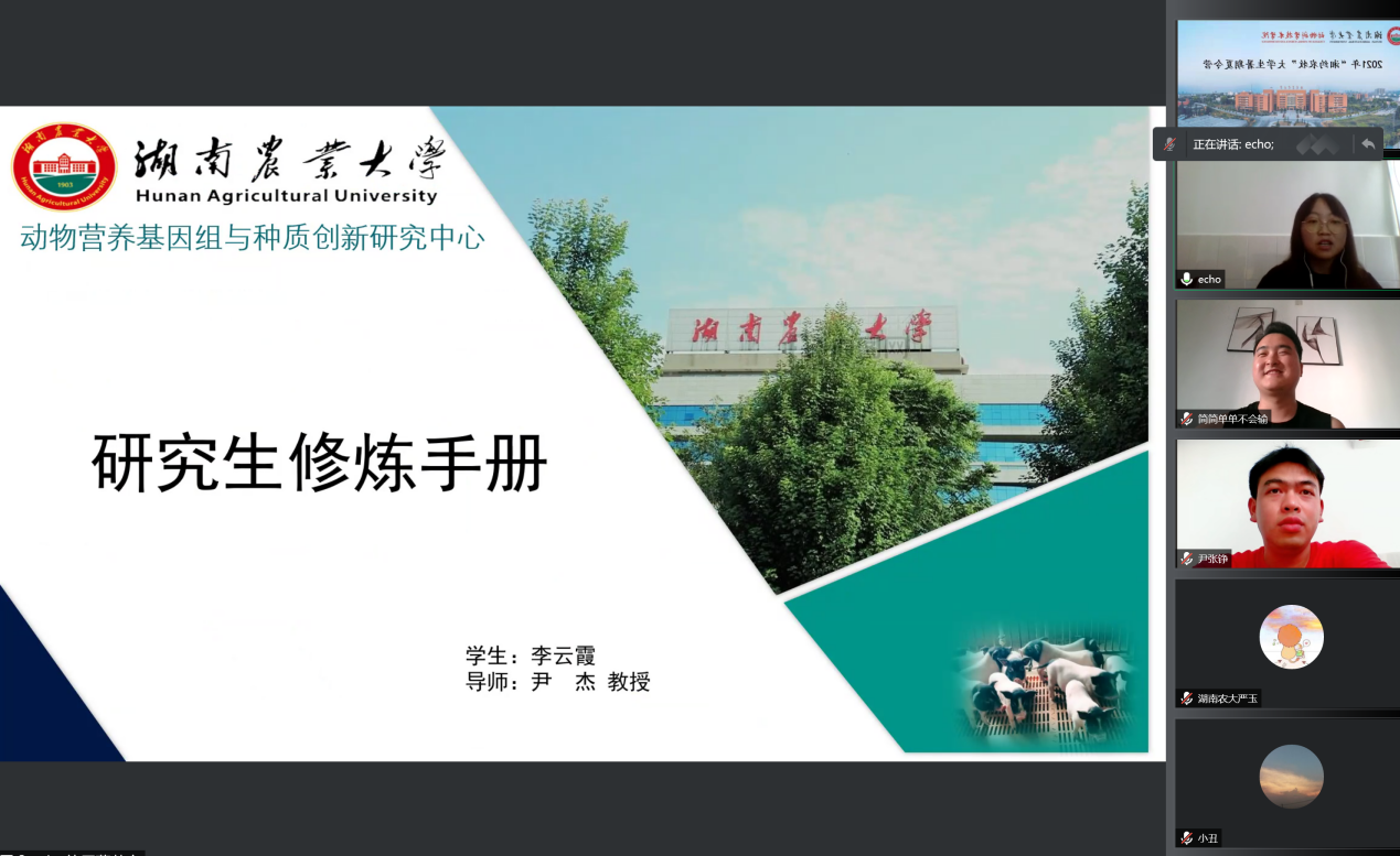 在夏令营四天的时间里,除了紧张的营员汇报环节外,动科学院还精心安排了学院整体情况介绍、学院科系介绍、老师交流汇报和科研团队宣讲等一系列线上讲座,加强了同学们对于动科相关学科前沿动态的了解,同时也让同学们感受到永利集团3044官网欢迎您深厚的校园文化底蕴和动科学院强大的科研实力。