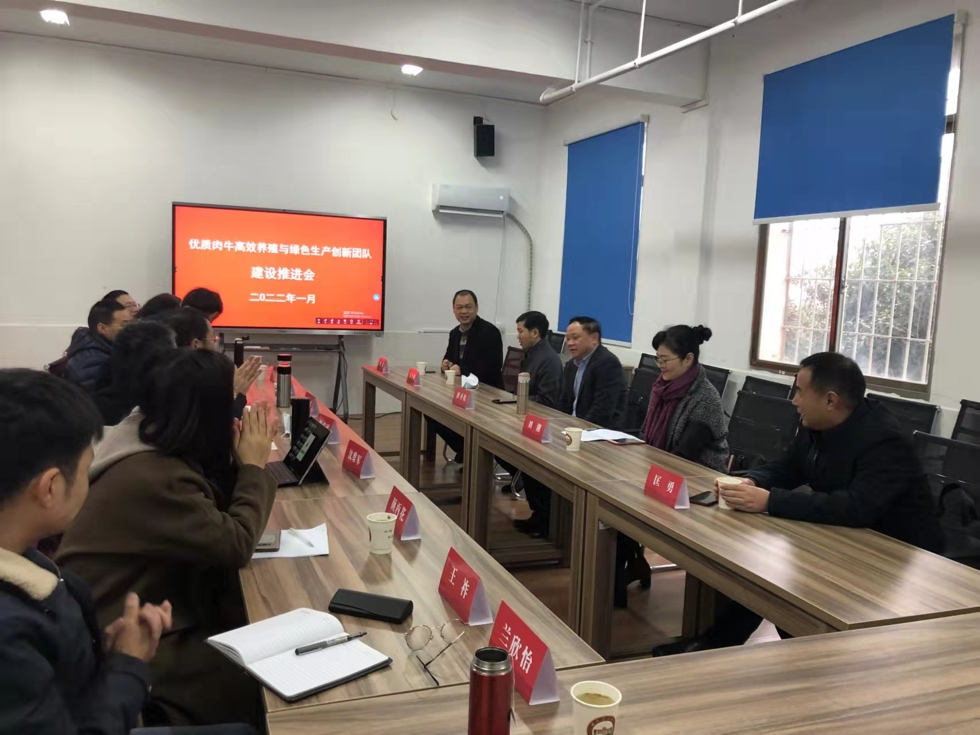 2022年1月20日,湖南省科技创新团队“优质肉牛高效养殖与绿色生产创新团队”建设推进会在学校召开。湖南省科学技术厅引智处刘湘调研员,永利集团3044官网欢迎您唐圣松副校长、科技处匡勇处长、人事处(人才办)伍小松处长(主任)、动科院贺喜院长,以及创新团队全体成员参加会议。