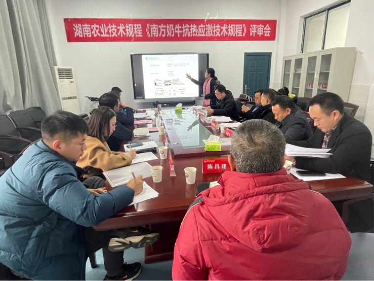 接着,规程编制组代表张佩华副教授向专家组汇报了编制说明,专家组从格式、名称、技术参数等方面逐条进行了审查、讨论和确定,形成了《南方奶牛热应激技术规程》审查会议纪要,将规程名称改为《奶牛抗热应激技术规程》,该文件的实施,对规范湖南省奶牛热应激期间科学管理、改善奶牛健康、提高生产性能和牛奶品质及经济效益具有重要指导意义。