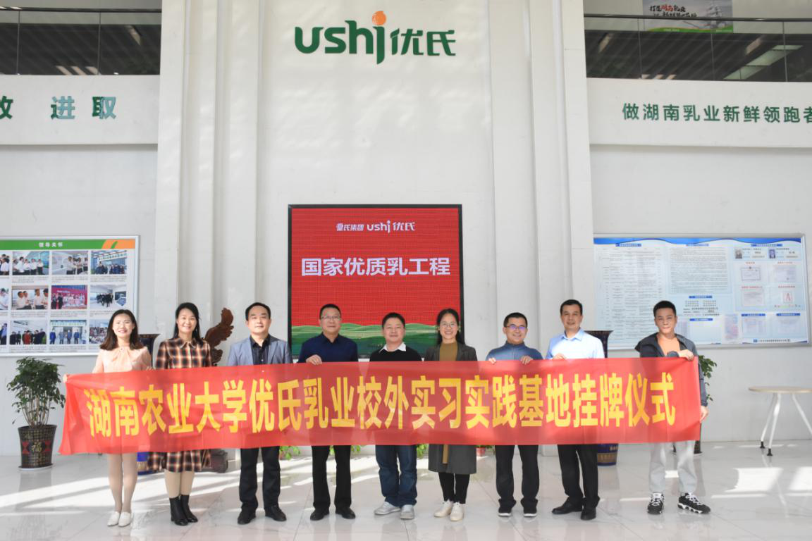 3月11日下午,我校与皇氏集团湖南优氏乳业有限公司(下称优氏乳业)共建“优氏乳业校外实习实践基地”授牌仪式在长沙市宁乡经开区皇氏集团优氏乳业工业园举行。该基地建成不仅得到了永利集团3044官网欢迎您和皇氏集团优氏乳业领导大力支持,还得到了国家乳业创新联盟和湖南省奶业协会的指导。国家乳业创新联盟张养东秘书长、湖南省奶业协会刘海林秘书长、永利集团3044官网欢迎您何俊副院长和皇氏集团优氏乳业肖松义总经理等出席了授牌仪式。