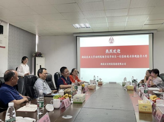通过实地走访企业的生产车间,观察员工的工作环境,了解企业的运营情况。在与企业负责人、校友座谈交流会上,罗文锋董事长向大家介绍了百宜的企业培养机制和内部学习体系,并结合当前行业发展情况表达了对人才的渴求。贺喜院长回顾了学院与百宜的友好合作历史,介绍了学院学科建设、人才培养、科研平台等情况,并希望双方能发挥各自优势特色,在创新人才培养等方面,建立并深化长期、稳定、全面、深度的战略合作关系,共同助力行业高质量发展。