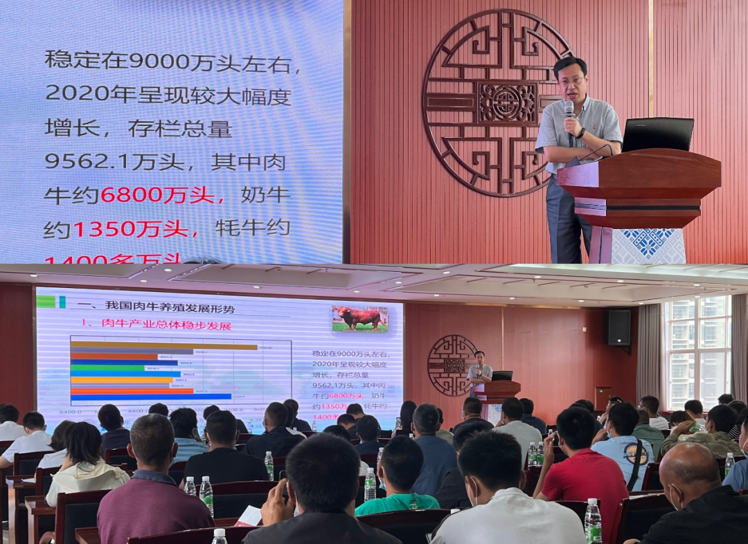 万发春教授就肉牛养殖形式与高效养殖技术做专题讲座。详细分析我国肉牛养殖发展形势,讲解西南方肉牛养殖的特点,并从西南方肉牛高效养殖技术的市场定位、饲养方式、养殖品种等方面为墨江县发展肉牛养殖产业提出指导性建议。