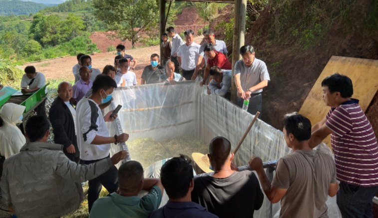 理论培训后,全体学员前往联珠镇象鼻村陈兴壁牛场进行实地培训。万发春教授现场指导学员制作贮存青贮饲料,针对学员在肉牛养殖过程中遇到的难题进行专业性解答,对陈兴壁牛场存在的问题提出改进意见。刘磊副教授针对牛场患病肉牛现场诊断,为牛场负责人提供解决方案。