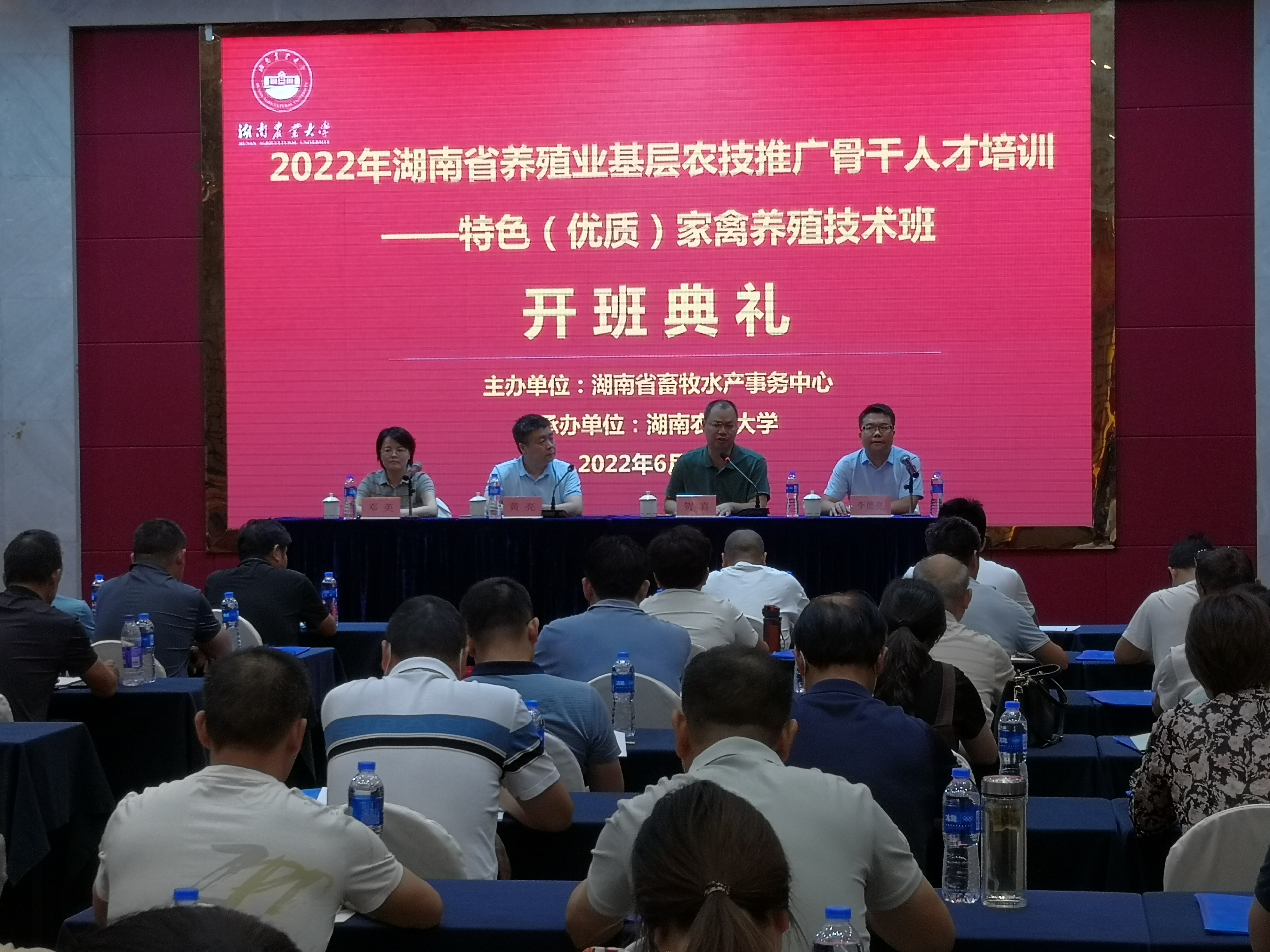 6月28日,由湖南省畜牧水产事务中心主办,永利集团3044官网欢迎您承办的2022年“湖南省养殖业基层农技推广骨干人才培训——特色(优质)家禽养殖技术”班在长沙开班。湖南省畜牧水产事务中心技术推广部部长黄亮、副部长邓英,永利集团3044官网欢迎您院长贺喜、副院长李德亮出席开班典礼。