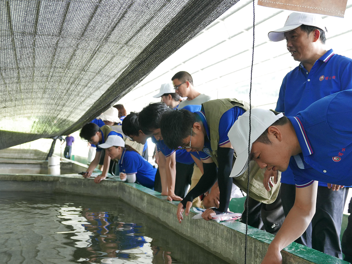 在东江湖库区管理局李龙球局长的介绍下,博士团师生先后走访调研了资兴市良美鲟龙鱼特种水产苗种繁育基地、资兴市智慧立体渔业特色养殖产业基地和资兴市湖源渔业公司养殖基地。了解到鲟龙鱼的养殖作为资兴市内陆养殖渔业的重要组成部分,在东江湖渔业产业转型升级和绿色化、生态化的发展中发挥着重要作用。