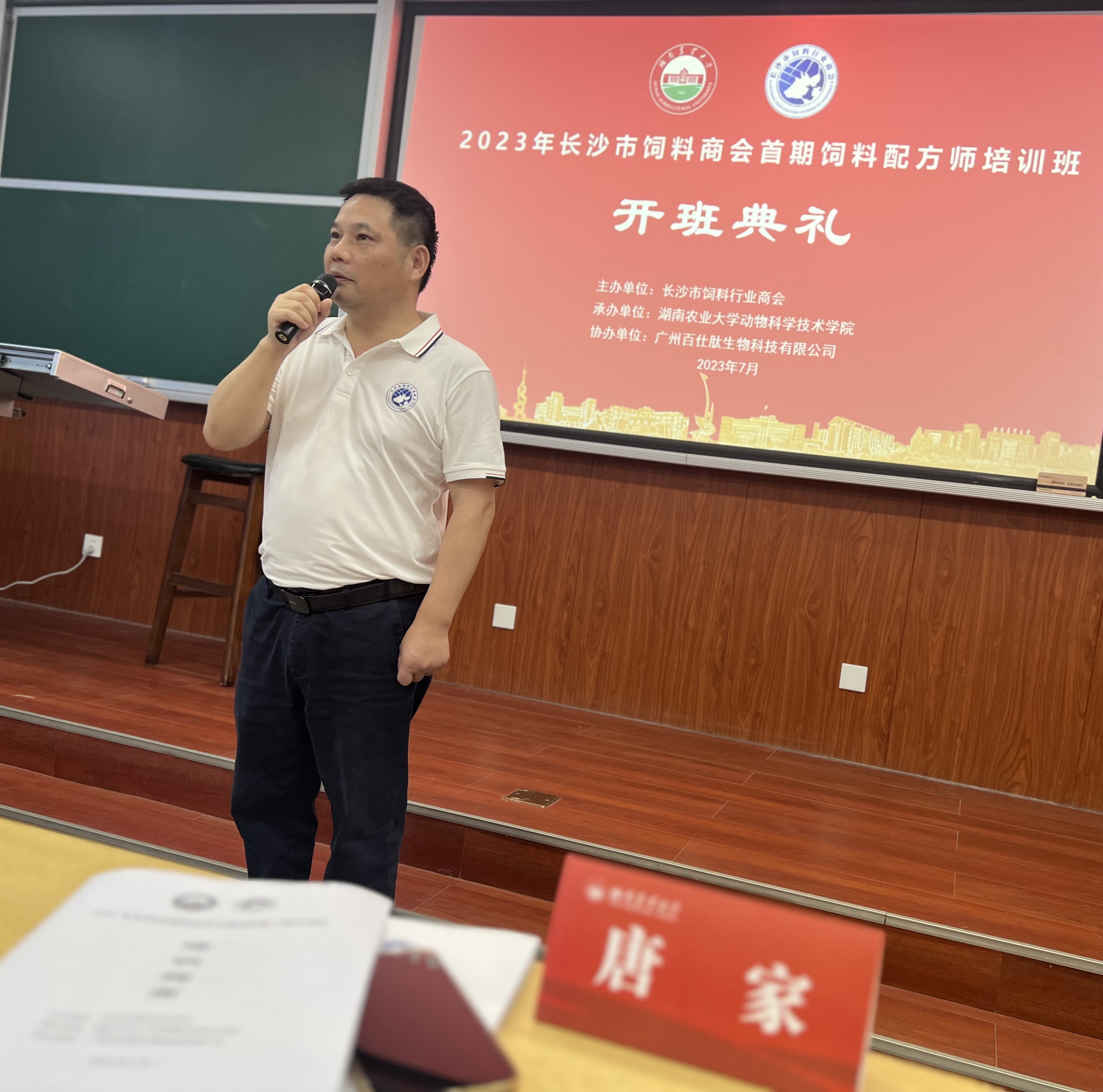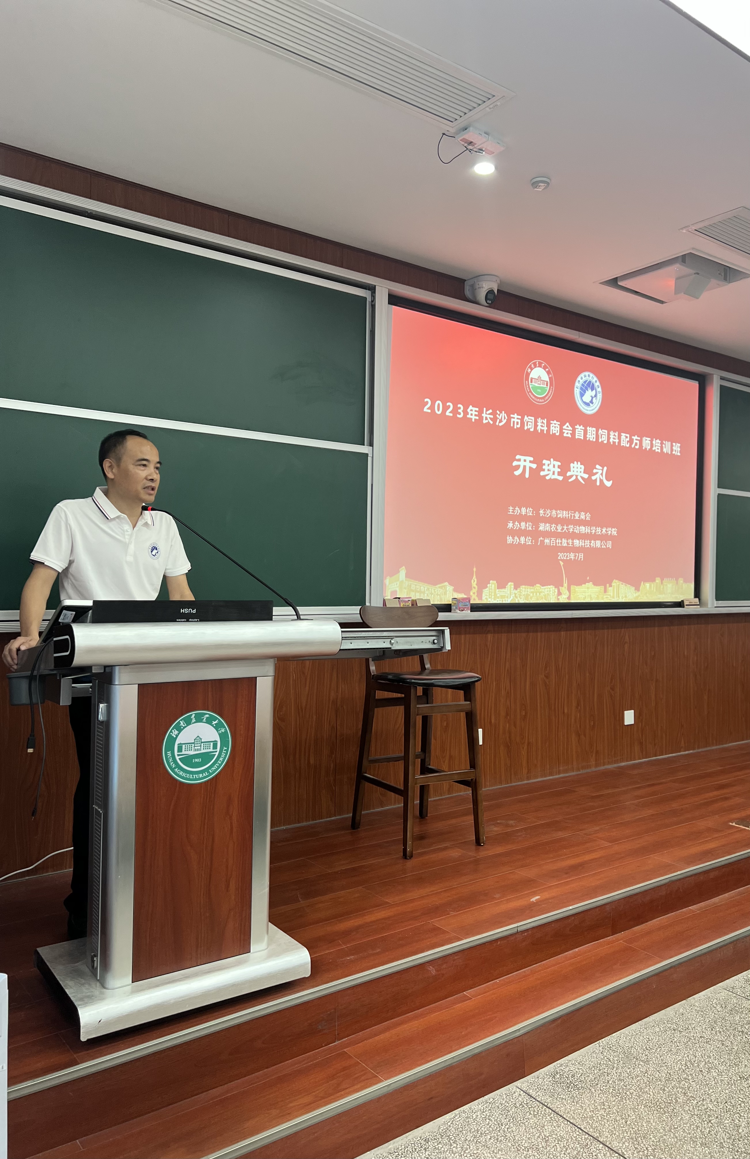 2023年7月7日,由长沙市饲料商会主办、永利集团3044官网欢迎您承办、广州百仕肽生物科技有限公司与湖南家禽产业技术体系协办的首期饲料配方师培训班在永利集团3044官网欢迎您成功召开。10余名讲师和嘉宾,长沙绿叶生物科技有限公司、湖南农大追求饲料科技有限公司、湖南华佑生物科技有限公司等17家企业的40多名企业家和技术精英参加了本次培训。