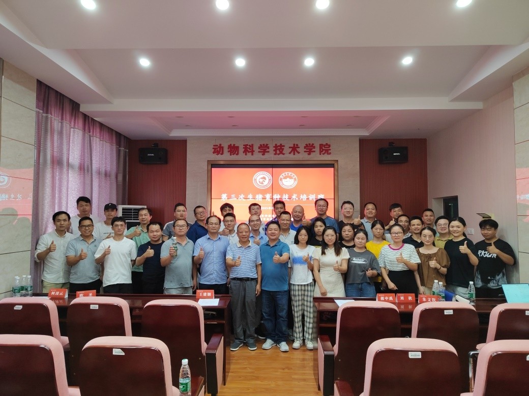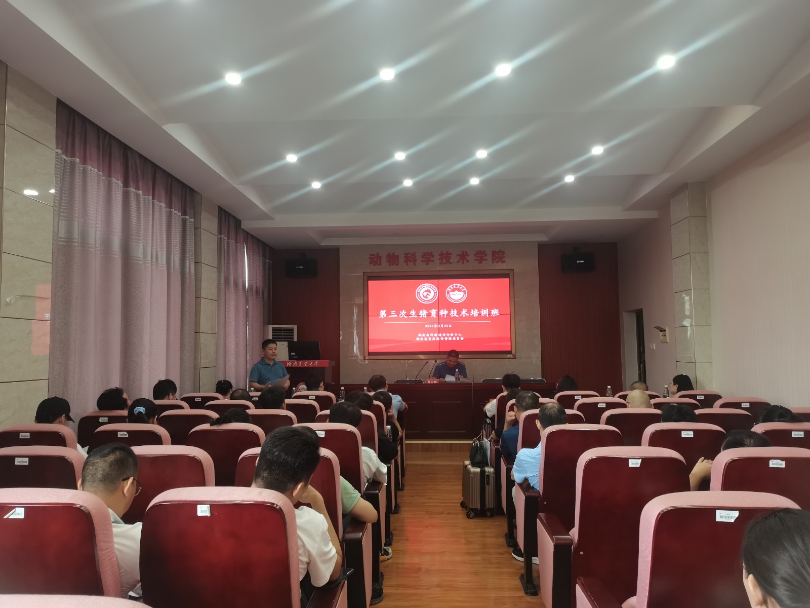 为贯彻落实《2023年湖南省生猪育种工作计划》,保证省种猪联合育种数据上传的及时性和有效性,加强育种新技术的推广,湖南省畜禽遗传资源委员会委托省种猪遗传评估中心于8月25日在永利官网举办第三期生猪育种技术培训班,来自16家省级核心育种场/公猪站的育种技术人员26人,7个市州农业农村局(畜牧水产事务中心)生猪种业管理专业技术人员9人参加培训。省畜牧水产事务中心易宏辉处长及郝中禹科长、学院何俊副院长、广东艾佩克科技有限公司何耀棋总经理、吉力生物科技有限公司赵洋总监、永利集团3044官网欢迎您张跃博老师及高宁老师等参加了开班仪式。