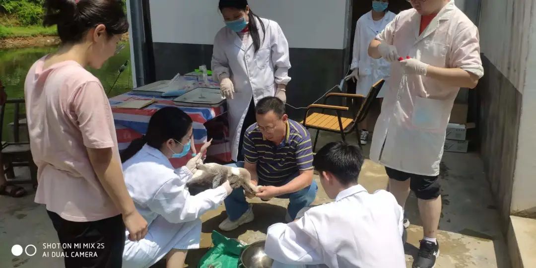 方热军(中)指导研究生开展武冈铜鹅的科学试验。