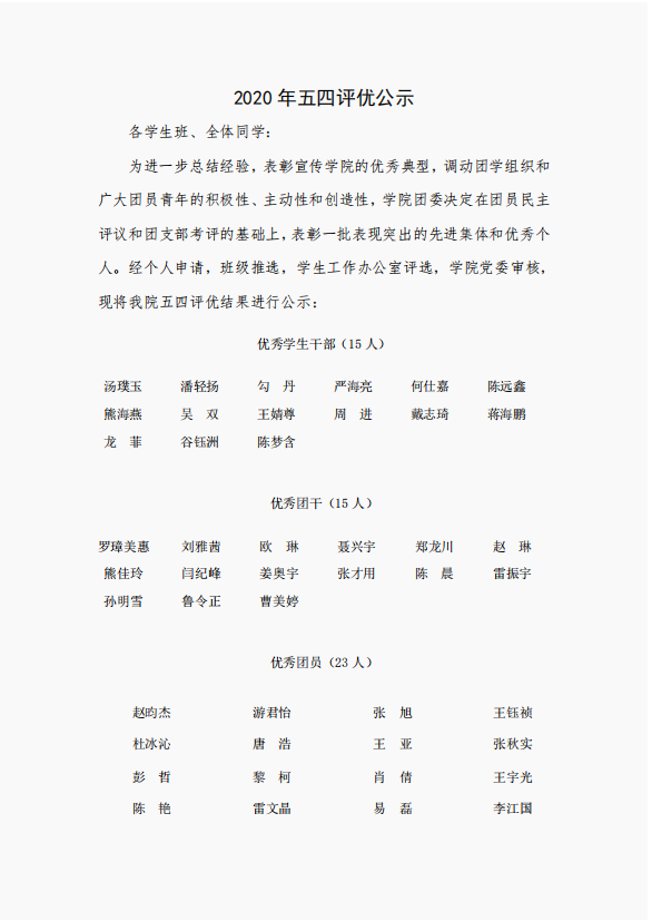 2020年永利集团3044官网欢迎您“五四评优”公示
